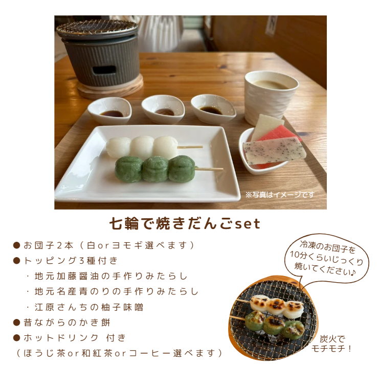 ※七輪の焼き団子、蜜やきいもは冬期限定メニューです。